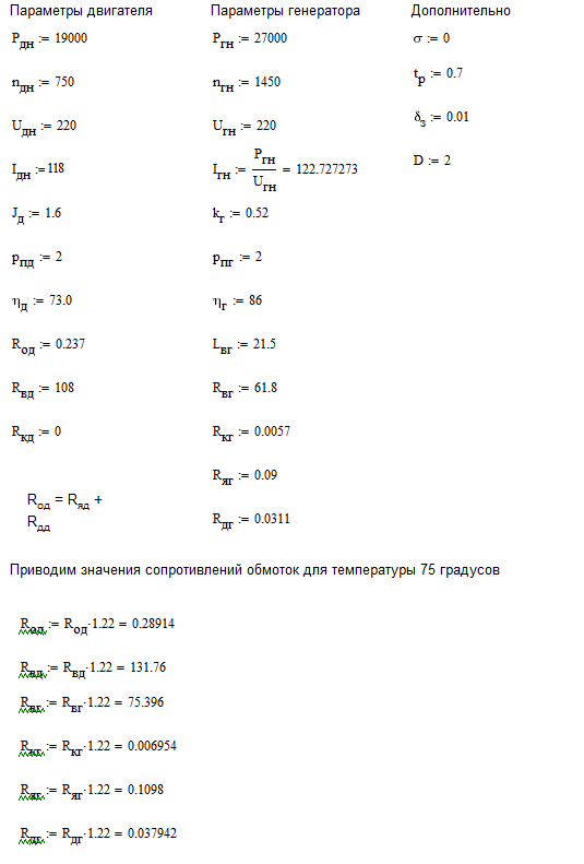 Расчет значений сопротивлений обмоток двигателя и генератора для