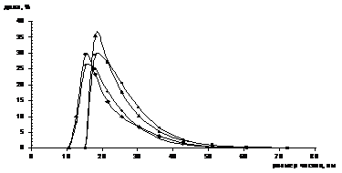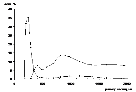 полимерно-мономерных частиц (ПМЧ), их диаметр, распределение частиц по размерам