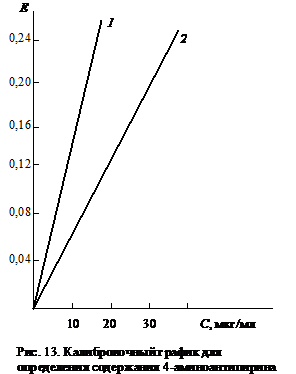 мл дистиллированной воды, растворяют и доводят водой объем до метки. В другую