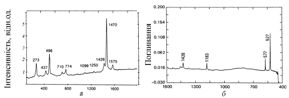 комбінаційного розсіяння світла (КРС) активними є дві моди типу Ag з частотами 497 см-1