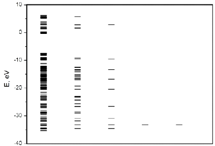2s та 2p. 240 електронів молекули С60 розподіляються наступним