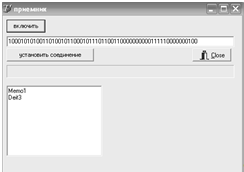 then:=1;:=IntToStr(rez);.Socket.SendText(str);.Clear;:=0;:='';('сообщение передано');:=0;:=IntToStr(rez);.Socket.SendText(str);:=0;:='';.Clear;;;TForm1.vkl;.Port:=300;.Address:='127.0.0.1';.Active:=true;;TForm1.Button2Click(Sender: