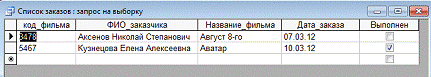 В режиме SQL запрос выглядит так:Заказы.код_фильма,