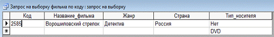 В режиме SQL данный запрос выглядит так:Фильмы. Код, Фильмы.