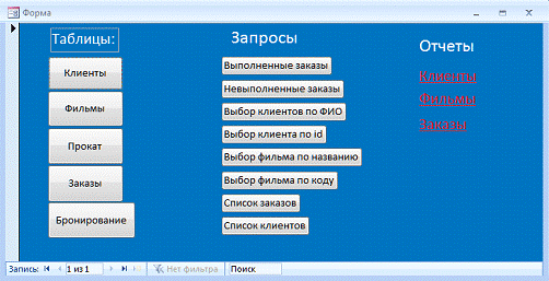 Кнопочная форма позволяет просматривать отчеты о клиентах и