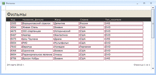 занимающейся поставкой DVD и VHS с фильмами. Главная таблица называется Фильмы.