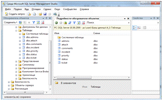 На рисунке 4.4. приведен список таблиц, реализованных в Microsoft SQL Server 2008