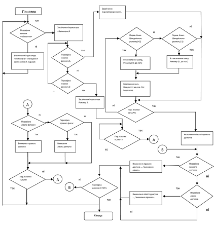 вмикаються двигуни);Кнопка «Стоп» (Пристрій призупиняє рух, двигуни