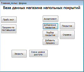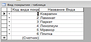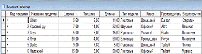 СУБД «Магазин напольных покрытий» и овладении навыками работы в СУБД ACCESS.