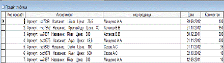 дата количество, стоимость), ассортименте (артикул,…, цена).