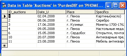 Таблица «Аукционы»