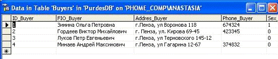 Таблица «Покупатели»