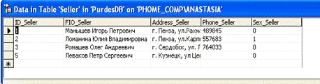 Таблица «Продавцы»