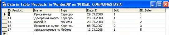 Таблица «Продукты»