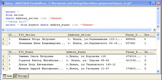Задание: Вывести список всех продавцов и покупателей, проживающих в