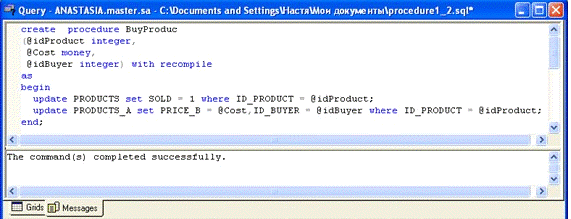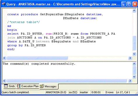 обслуживания фирмы, проводящей аукционны. На основе полученных знаний о MS SQL Server 2000 сделали вывод, что эта программа позволяет не