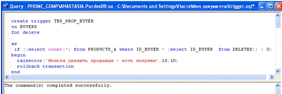 Разработка и сопровождение базы данных в среде SQL Server 2000