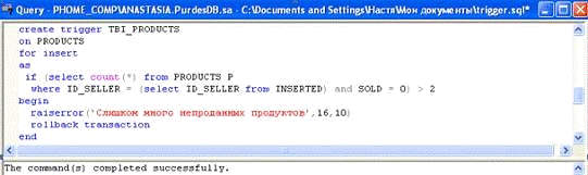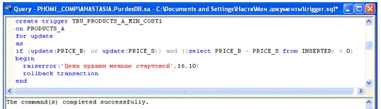 Задание: При изменении записи об изделиях на аукционах проверять, чтобы