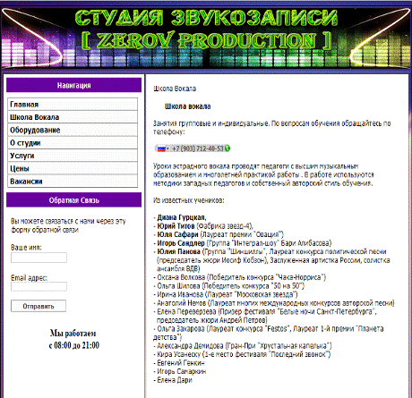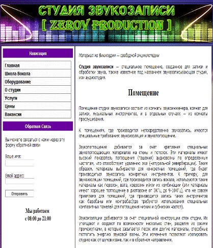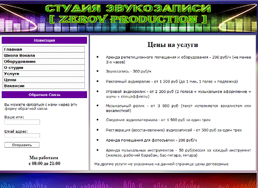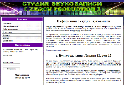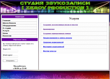 звукозаписи «Zerov Productions». Дизайн сайта отвечает заданным требованиям,