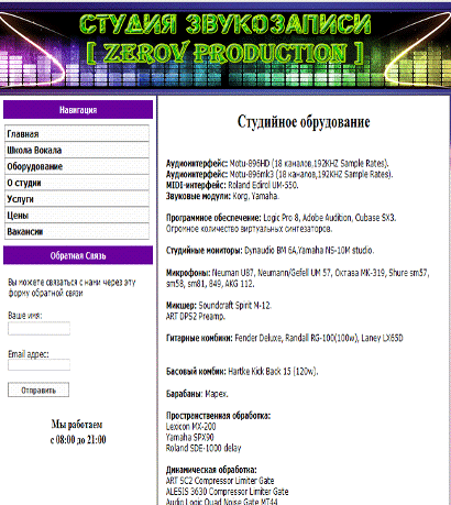 Разработка информационного сайта студии звукозаписи на базе PHP