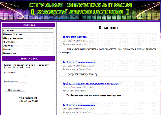Как раз благодаря веб-сайту, наша студия звукозаписи увеличила часы