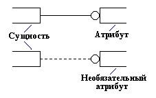 обозначается окружностью на конце линии, ведущей к атрибуту. Имя атрибута