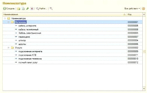 · справочник «Номенклатура»;