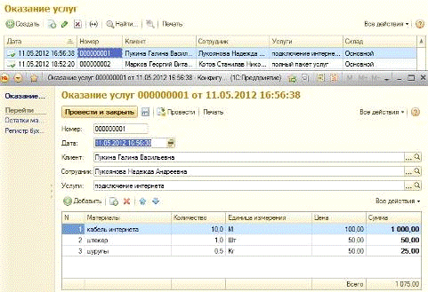 · документ «Оказание услуг»;