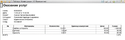 предоставления услуг. Он содержит информацию о том, какому клиенту были
