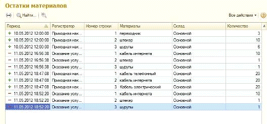 · регистры «Остатки материалов» и