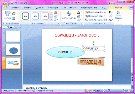 части окна отражаются все созданные слайды. Следующий слайд можно выбрать таким