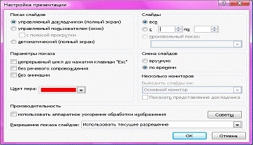 показа (для просмотра промежуточных этапов и готовой презентации).