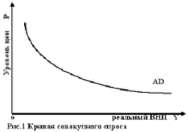 зависимость между объемом покупаемого реального ВНП и уровнем цен. На рис.1