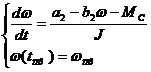 Определить зависимость скорости вала двигателя от времени ω(t). Вычислить скорость ωуст и время начала tуст установившегося движения вала. Построить