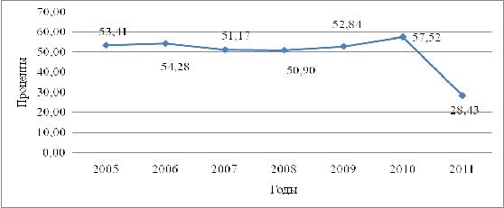 на 44%, а в 2011 году по сравнению с 2010 годом произошло уменьшение расходов