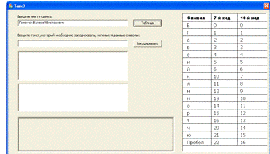 закодированном виде, пользуясь таблицей перекодировки.