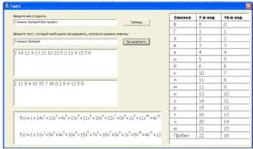первичного алфавита - иначе выдать сообщение об ошибке!) и выводит их в