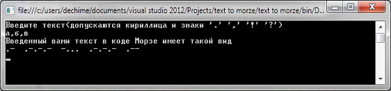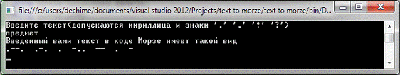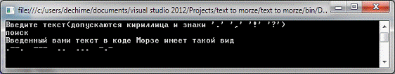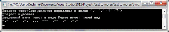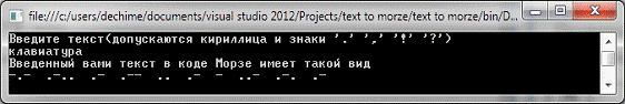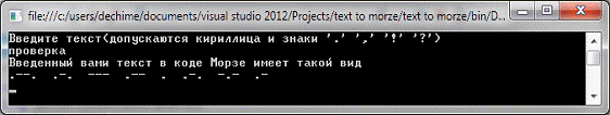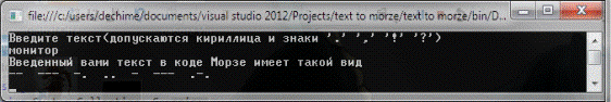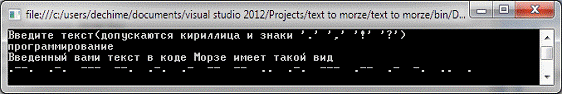 работы выполнялся перевод текста в последовательность кодов азбуки Морзе. Этот