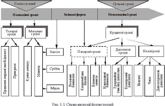 теоретичний аналіз функцій грошей, показати їх еволюцію за допомогою