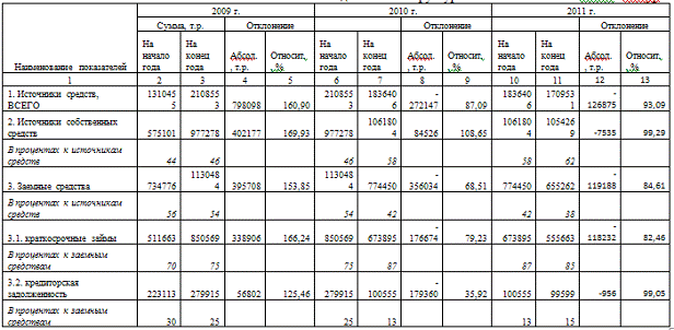 динамики, состава и структуры источников формирования капитала предприятия