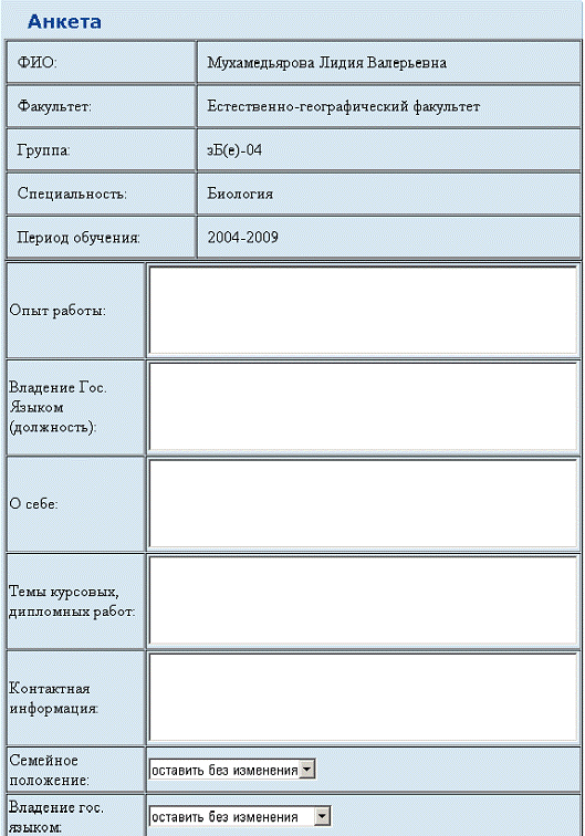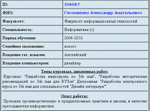 сведения о студентах закончивших ВУЗ, а также осуществлять отбор кадров исходя