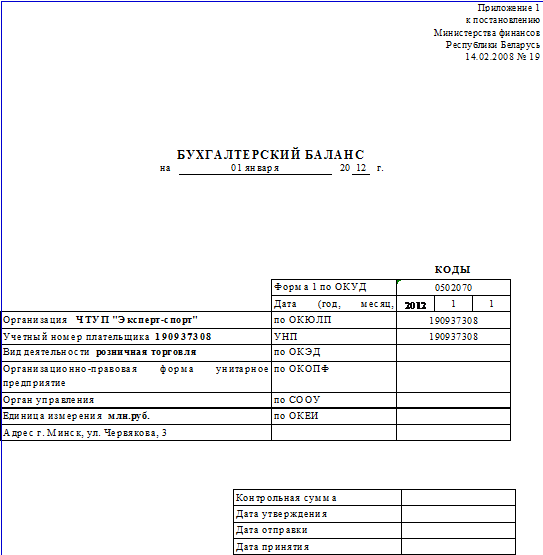 Баланс ЧТУП «Эксперт-спорт» за 2011 год