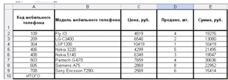 полученные от продаж каждой из моделей телефонов, исходными данными.