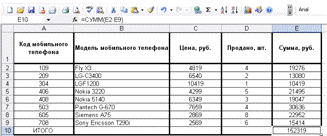 12. Заполнить графу Модель мобильного телефона таблицы "Ведомость