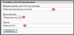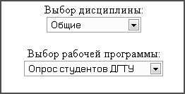 6) При выборе дисциплины, отображается список рабочих программ (рисунок