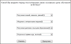 “Пропустить” соответственно для ответа на вопрос или его пропуска;