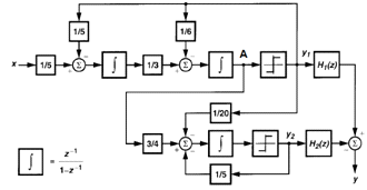 второго каскада. H1(z) = z-1 - элемент задержки, H2(z) - фильтр цифровой коррекции.