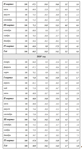 жилищно-бытовые и производственные условия, объем и качество потребительских