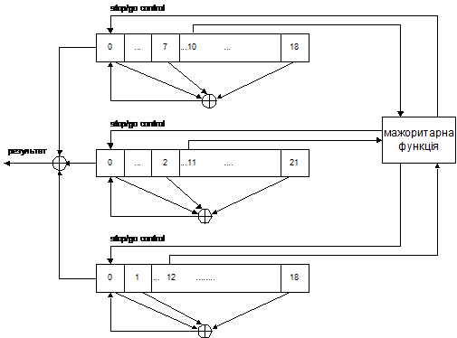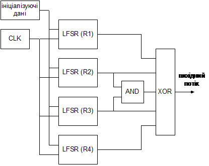 потокового шифрування даних. Саме простота апаратної реалізації та висока