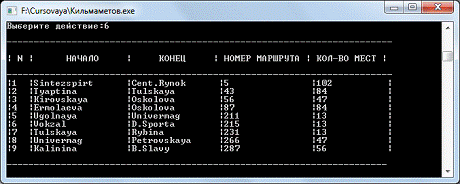 cin>>t.kon;<<"Номермаршрута:"; cin>>t.num;<<"Количество